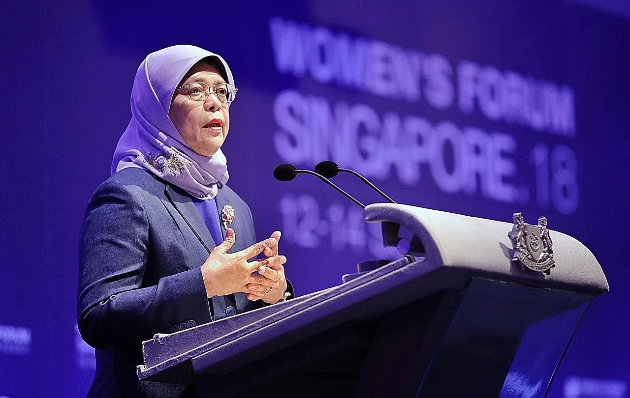 "We have, today, a world that is disrupted. Disruption has accelerated changes and challenges to the economy," said Madam Halimah, noting that a World Economic Forum study found that the automation of jobs was more likely to impact women negatively.
