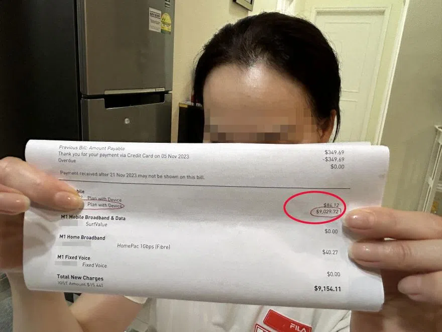 A 41-year-old mother was shocked when she received a notification from M1 alerting her that her phone bill had hit $9,029.72.