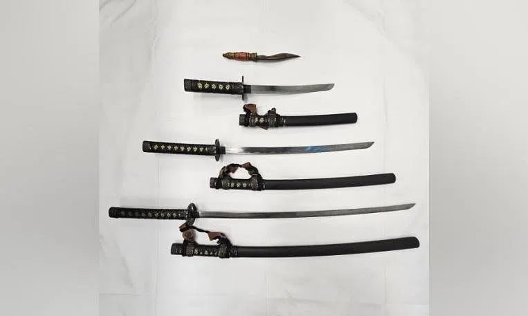 Three men aged between 22 and 35, were arrested on Wednesday for alleged illegal possession of scheduled weapons including a kukri (knife) and three katana (swords).