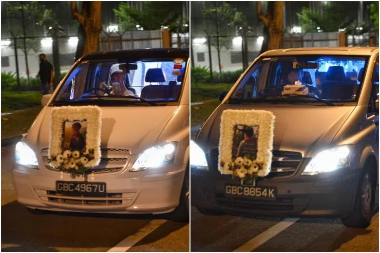 Two hearses bearing the portraits of Aston Yap Kai Shern and Ethan Yap E Chern arrived at Mandai Crematorium at around 7.45pm.