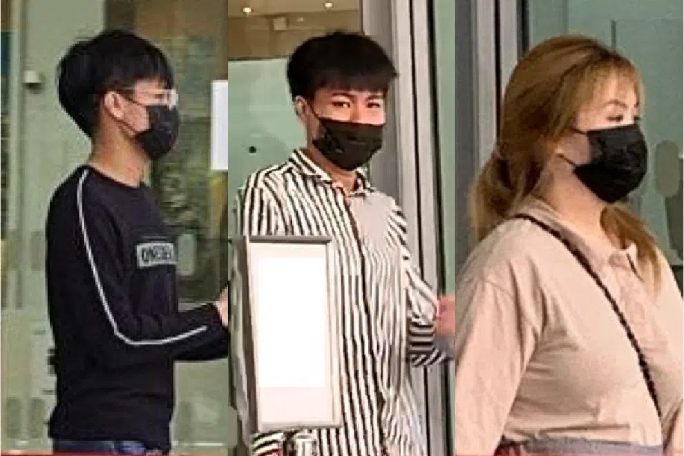 The trio were caught when a review of police camera footage showed Jia Cheng walking out of the lift at the Housing Board block with two bulky bags.