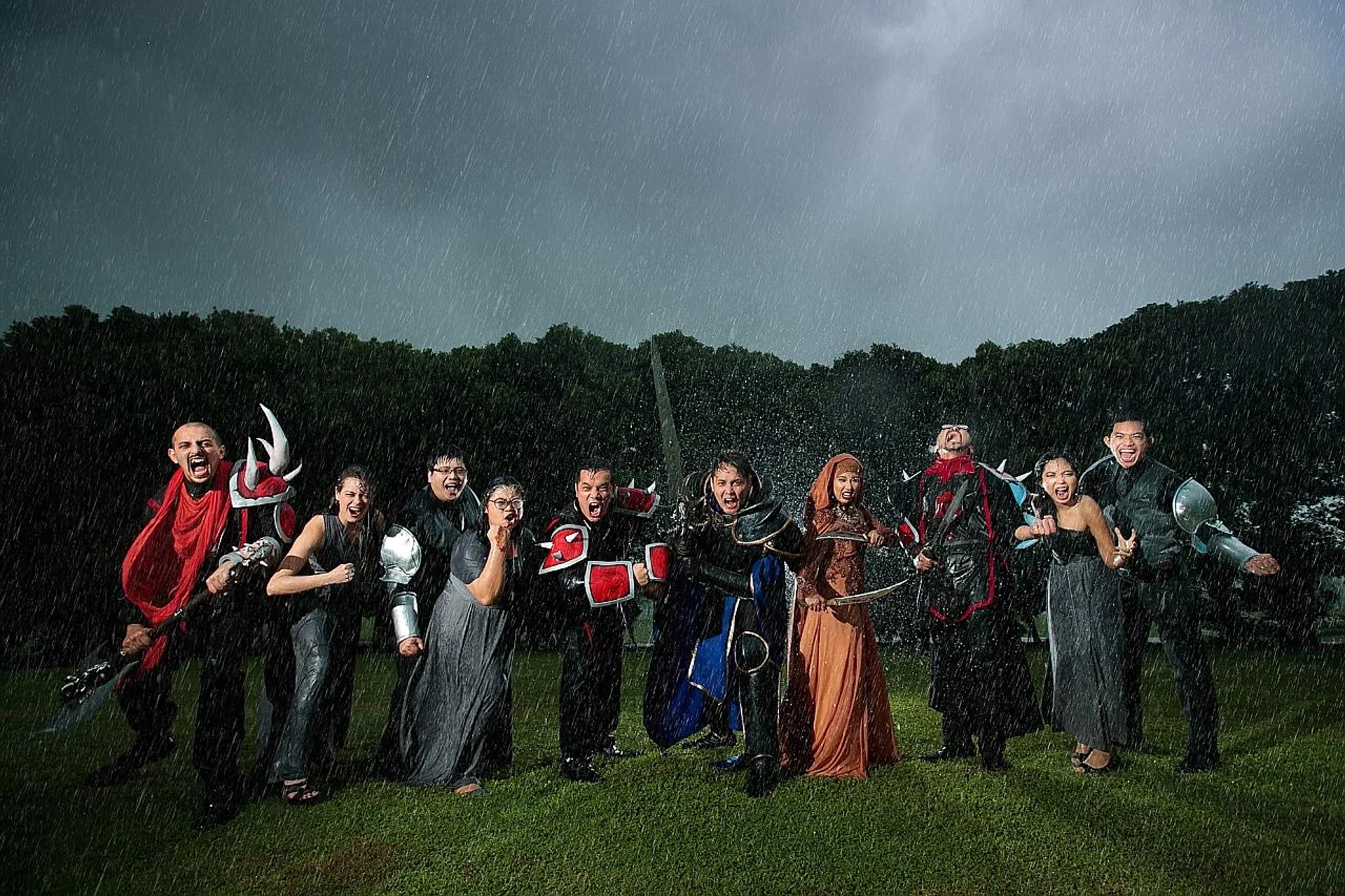 Used to creating epic pre-wedding photoshoots for others, Mr Zaki Ahmad (fifth from right) and Ms Siti Zahara (fourth from right) - known to their fans as Mezame Shashin-ka and MizDesert - celebrated their union with a colourful Warcraft/Lord Of The Rings/Harry Potter themed lunch at Orchid Country Club on Dec 17.