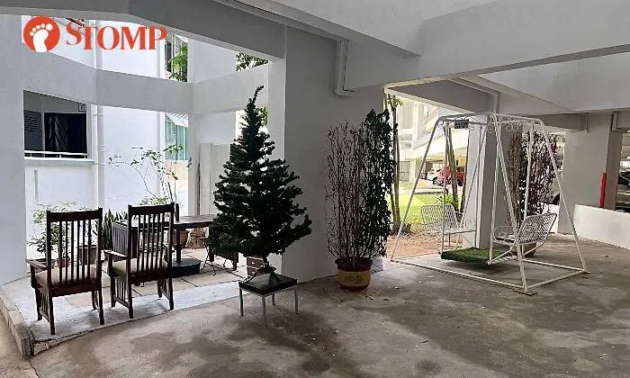 "This resident living on the ground floor was spotted placing their furniture including chairs, doormats, potted plants, bench, table and even a swing outside their flat and hindering the public space meant for common use," said the Stomper.