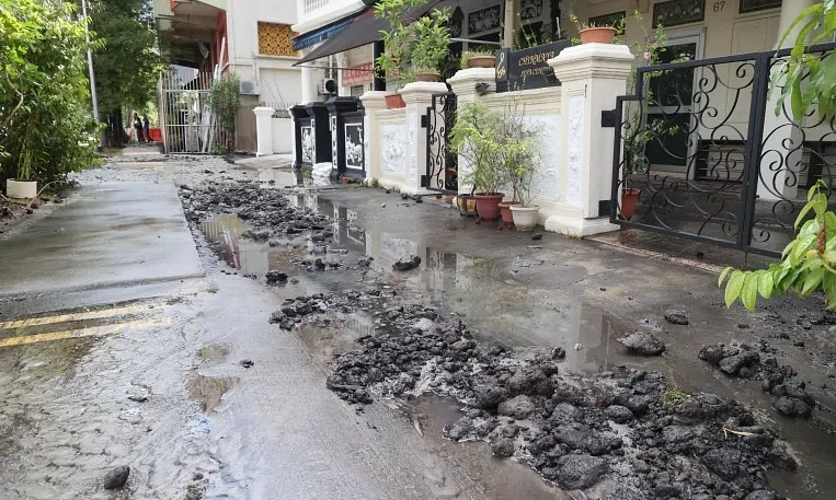 The leak also damaged Tessensohn Road, which has been closed to traffic towards Rangoon and Balestier roads, said national water agency PUB.