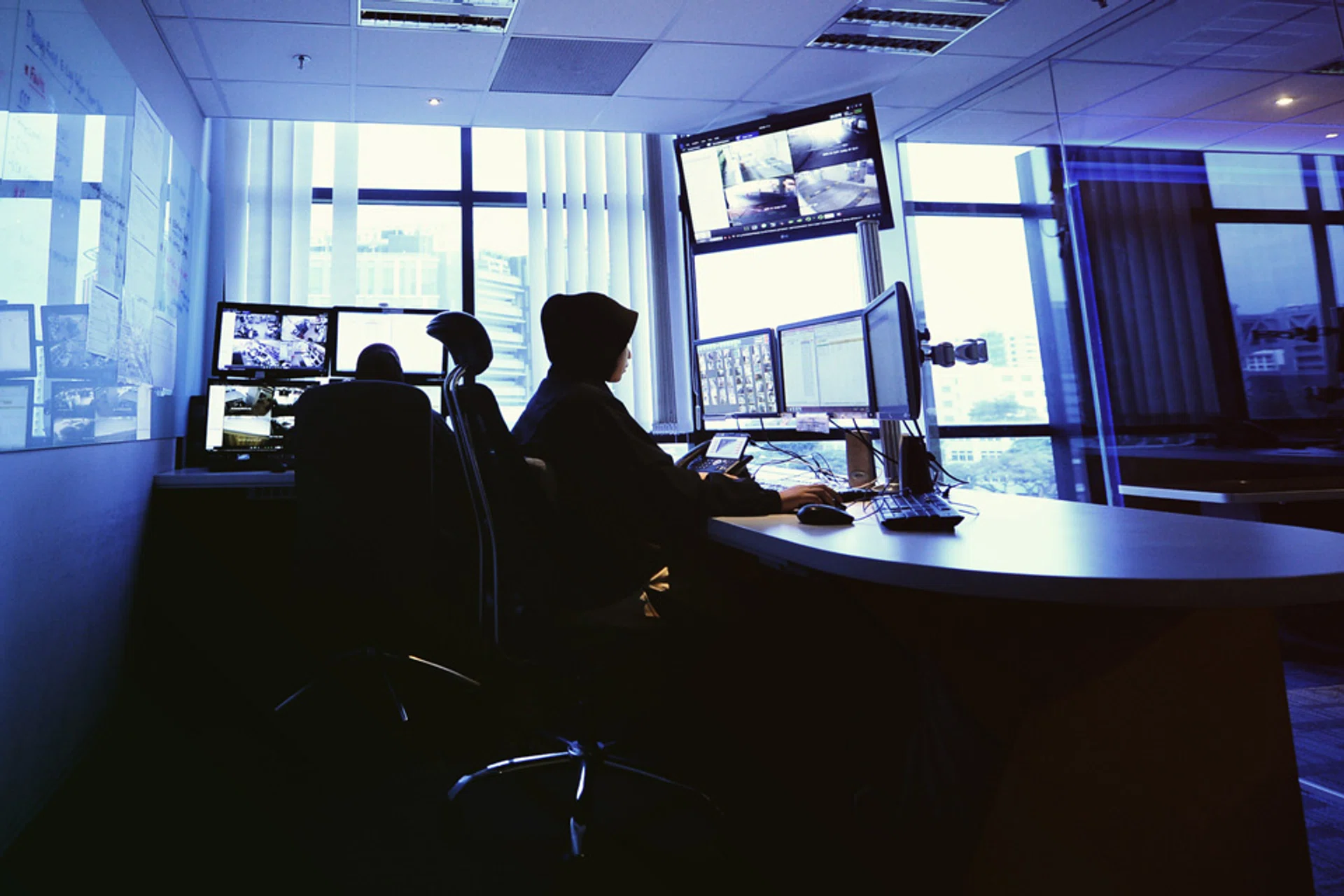 The IOC houses more than 50 screens recording footage of Certis Cisco cameras at strategic locations all over Singapore.