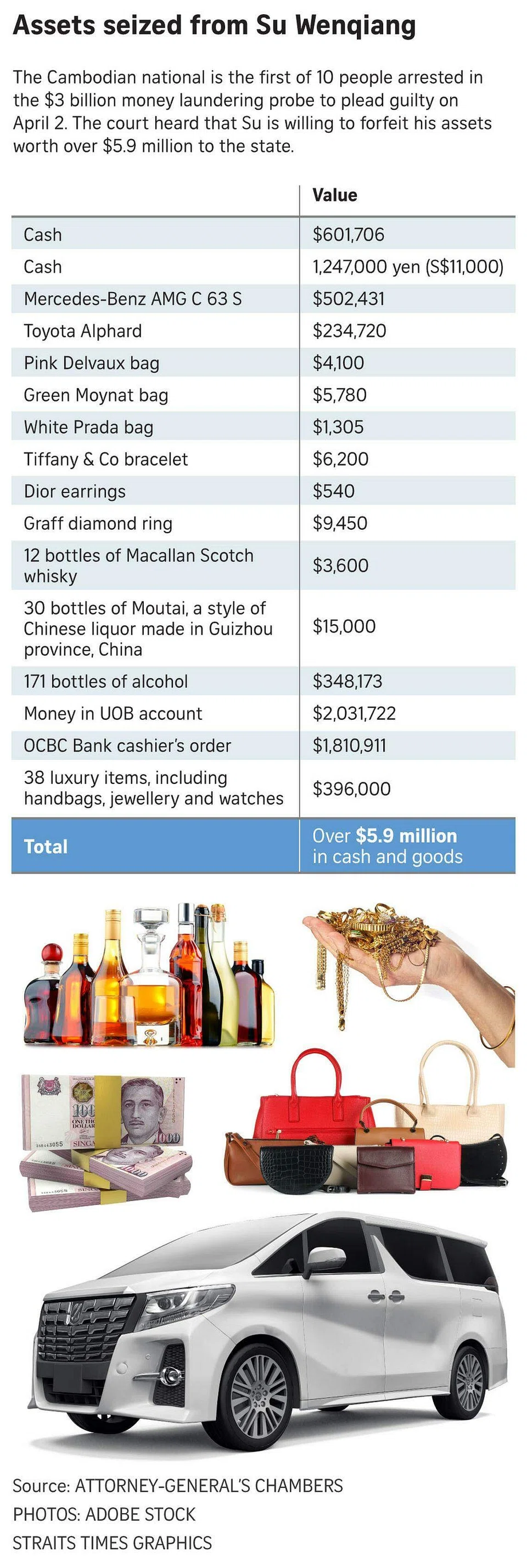 Cambodian national Su Wenqiang forfeited assets worth over $5.9 million. He was sentenced to 13 months' jail after admitting to two money laundering charges.