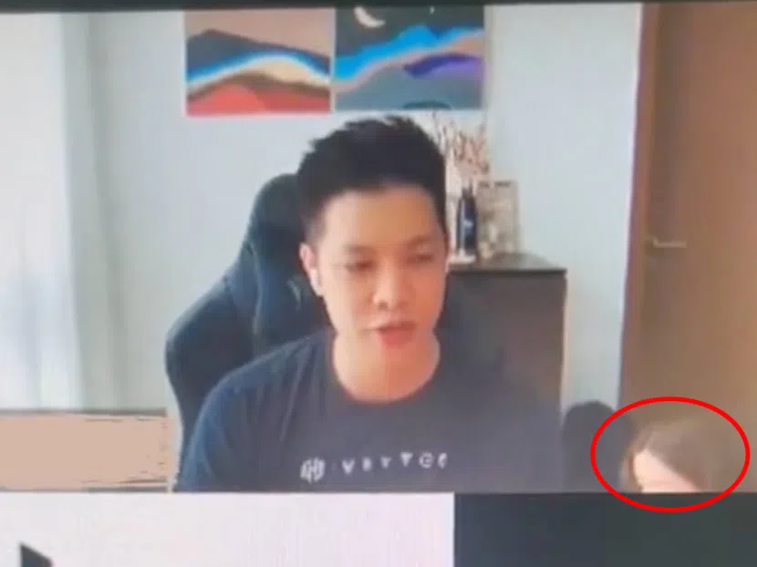 Wanting to retrieve her watch, a Singaporean woman crawled on all fours across the room while her husband attended a video call for work.