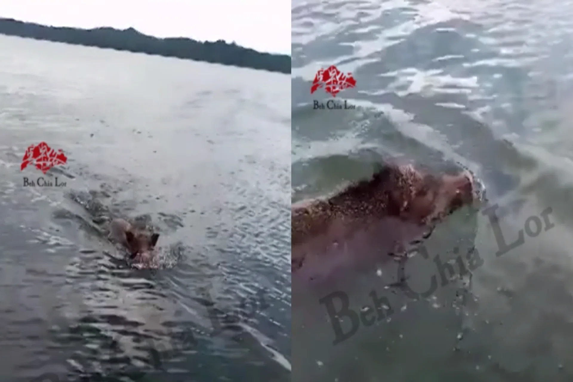 A wild boar was caught on video swimming in the waters between Singapore and Johor.