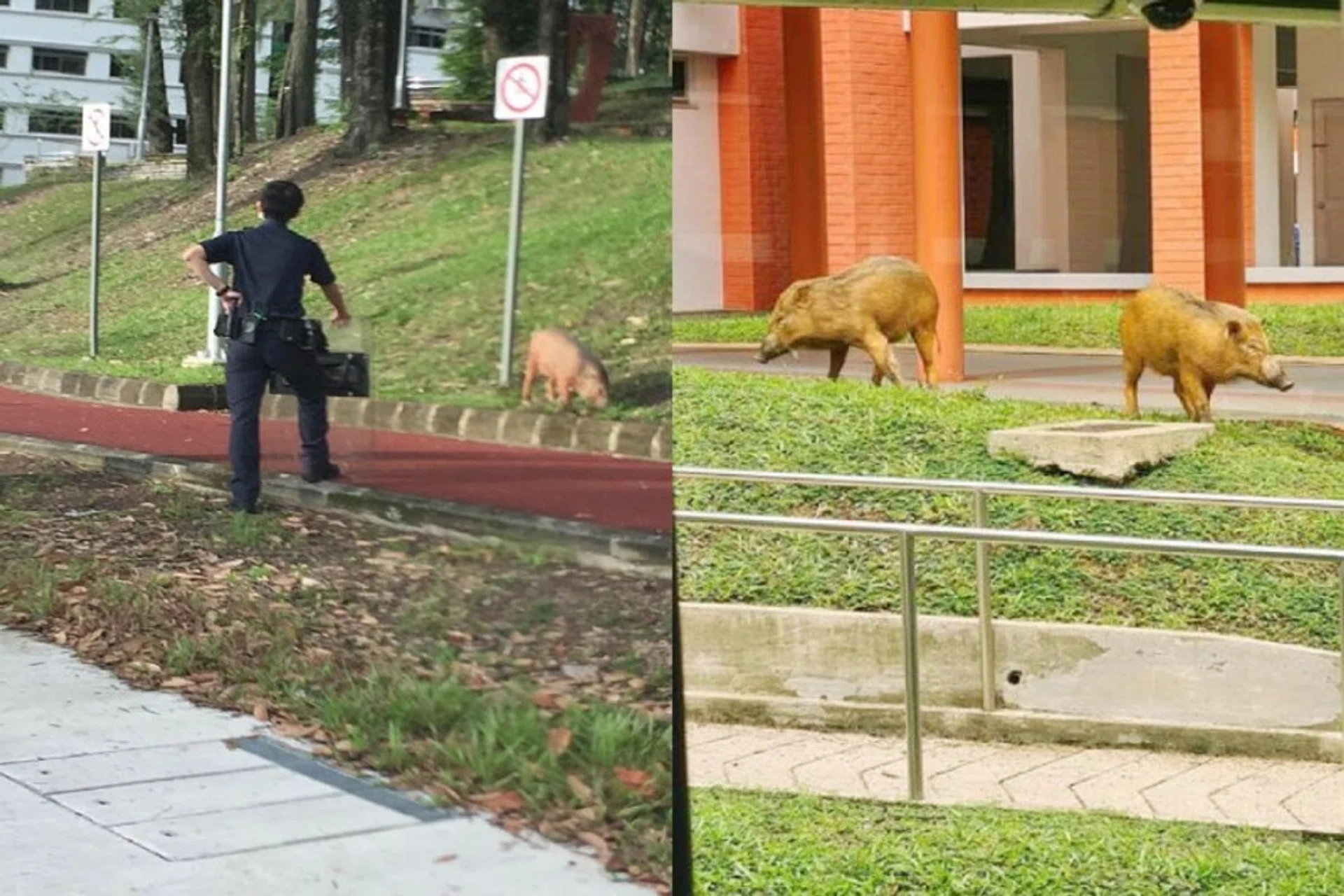 An eyewitness, who wanted to be known only as Li, told Shin Min he was surprised to see a wild boar at the grass patch while he was jogging.