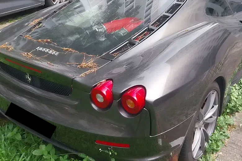 In Jurong West, a Ferrari sits abandoned, raising questions about its owner and how it ended up there.