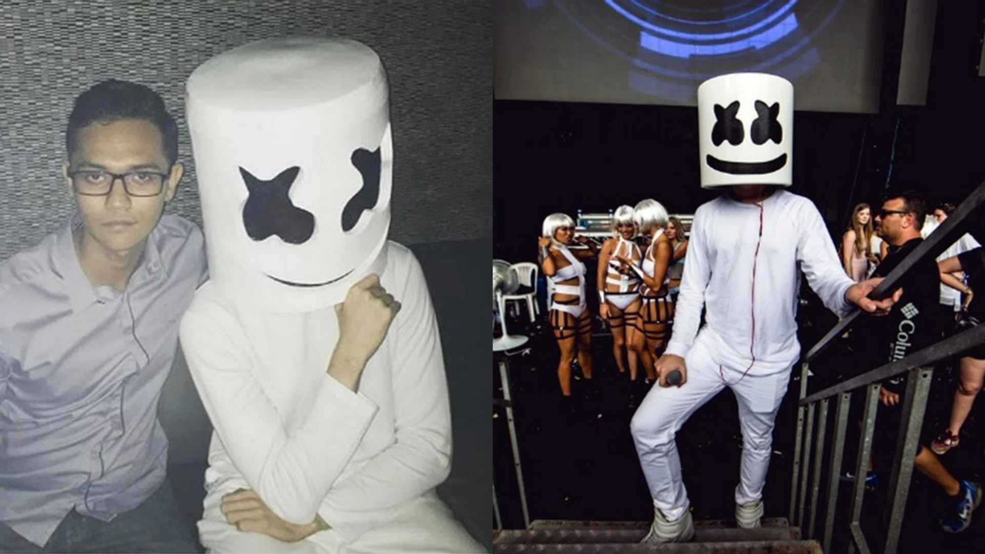 DOUBLE TROUBLE: The real DJ Marshmello backstage at Ultra Singapore 2016. PHOTO: TWITTER