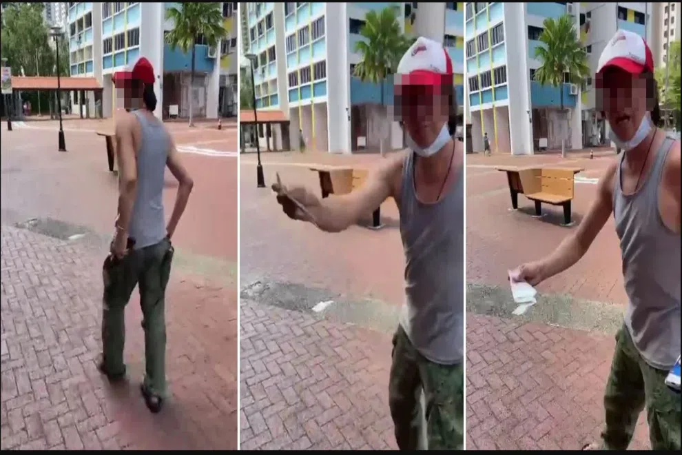 Later on, the man's behaviour got even more bizarre when he shouted "Majulah Singapura!", followed by a Hokkien expletive.
