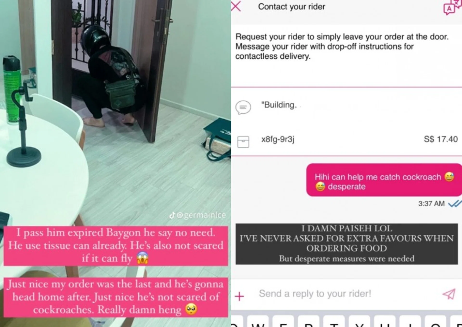 Woman appeals to Foodpanda rider to help catch cockroach in flat