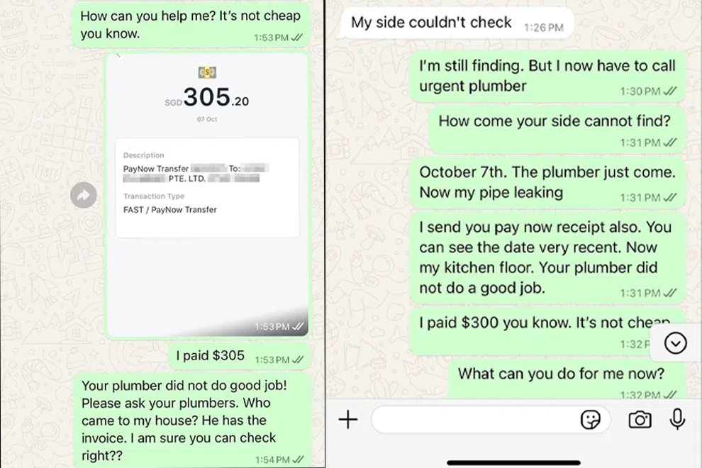 In her post, she explained she urgently trawled for plumbing service on Oct 7 after discovering a leak at her mother's home.
