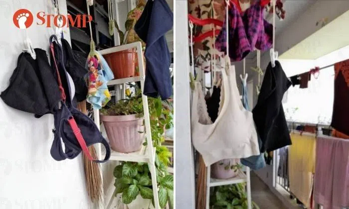 A woman has been hanging her clothes, including underwear, in the common spaces of her HDB block at Champions Way in Woodlands, much to the dismay of her neighbours.