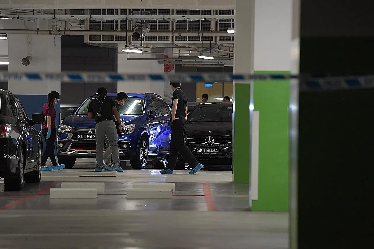 The police, who were alerted to the incident at about 7.40pm, said the victim was found lying motionless in the carpark and was pronounced dead by Singapore Civil Defence Force paramedics at the scene.