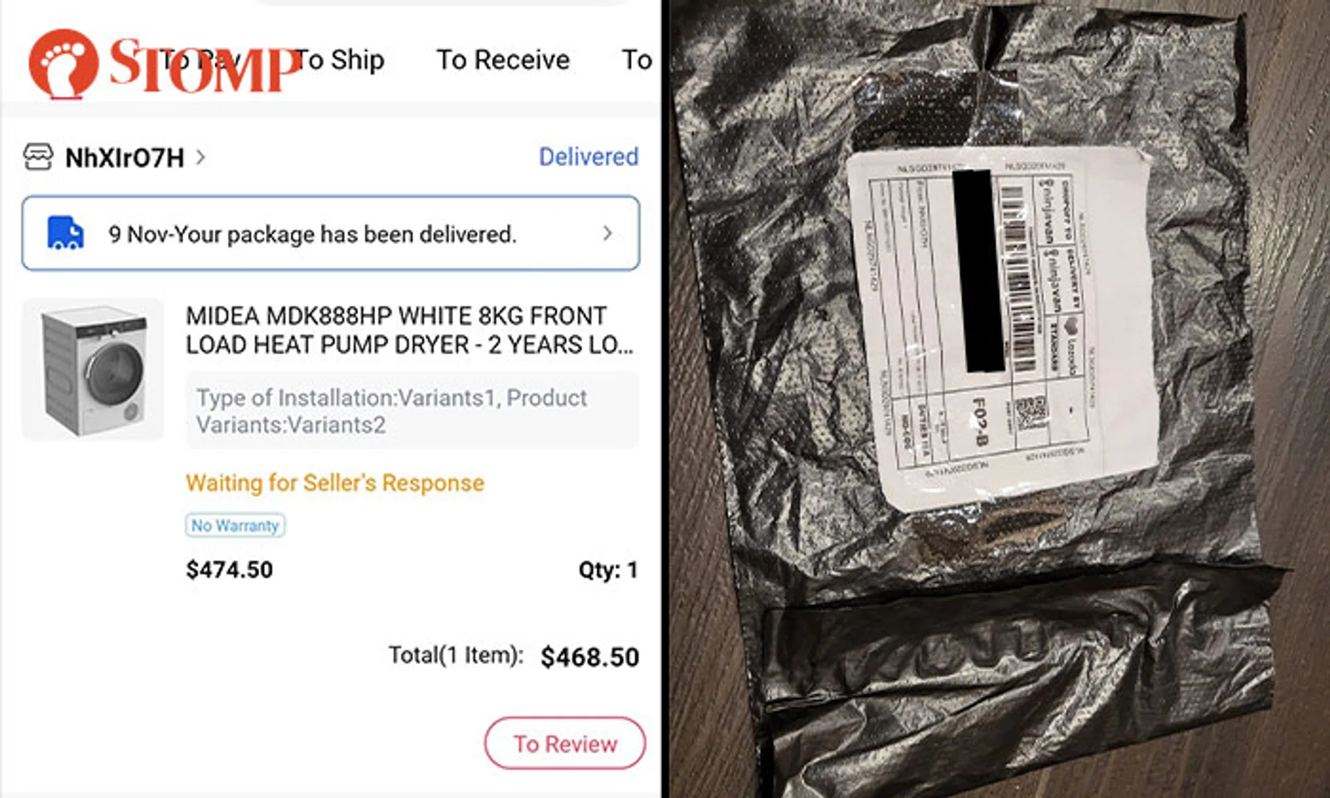 Woman pays $468.50 for dryer on Lazada but receives empty parcel: "This is a scam!"