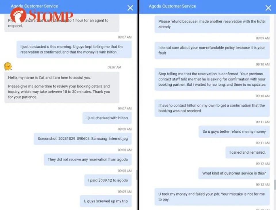 "I tried to explain to them the whole situation again and expressed my unhappiness that I have to bear responsibility for a mistake that was not made by me. They refused to acknowledge their mistake and proceeded to berate me for miscommunicating with the hotel," said the Stomper.