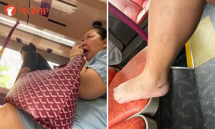 According to B, the woman had her foot "up there" for around five to 10 minutes, from the time she boarded the bus until she alighted at Khatib MRT station.