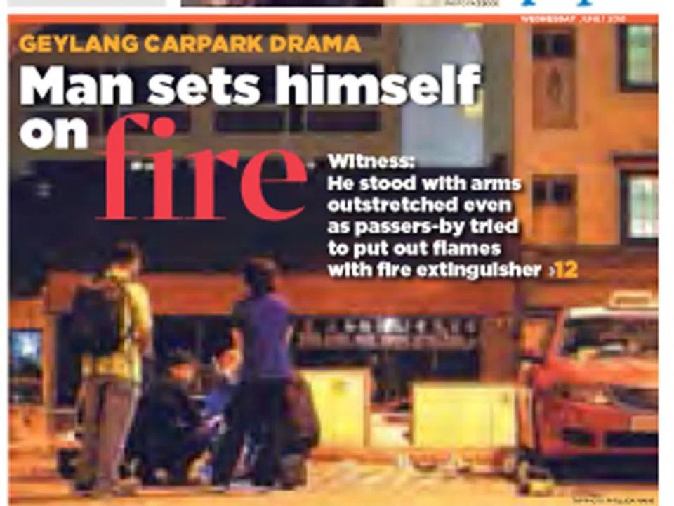 On Tuesday, Mr Tan set himself on fire in an open carpark at the junction of Lorong 19 Geylang and Lorong Bachok.