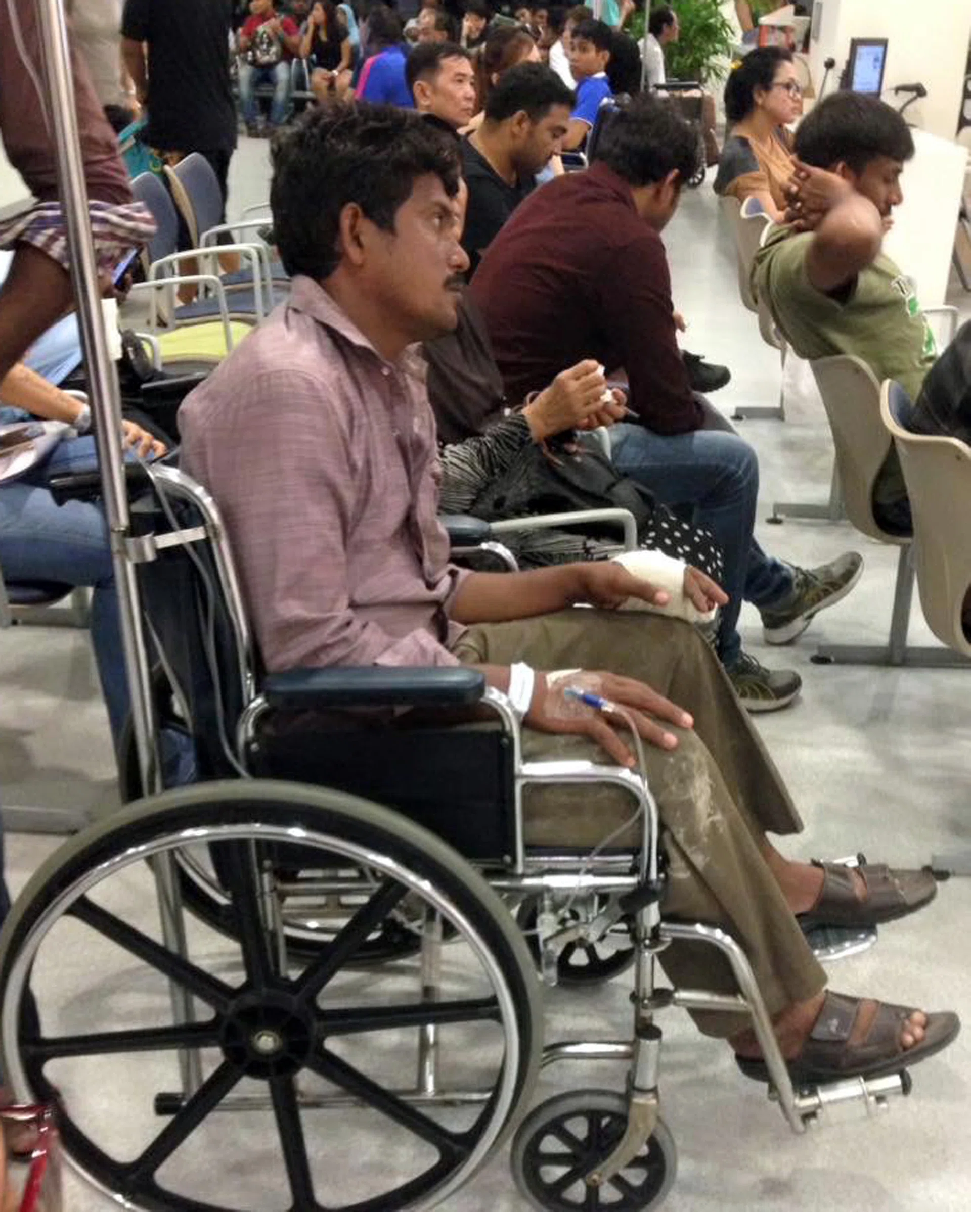 Mr Ko Ko Ye Chit, 43, an assistant manager at the construction company where the patient works, told TNP that after dropping the injured worker and two other workers off at the A&E, he went to park his car.