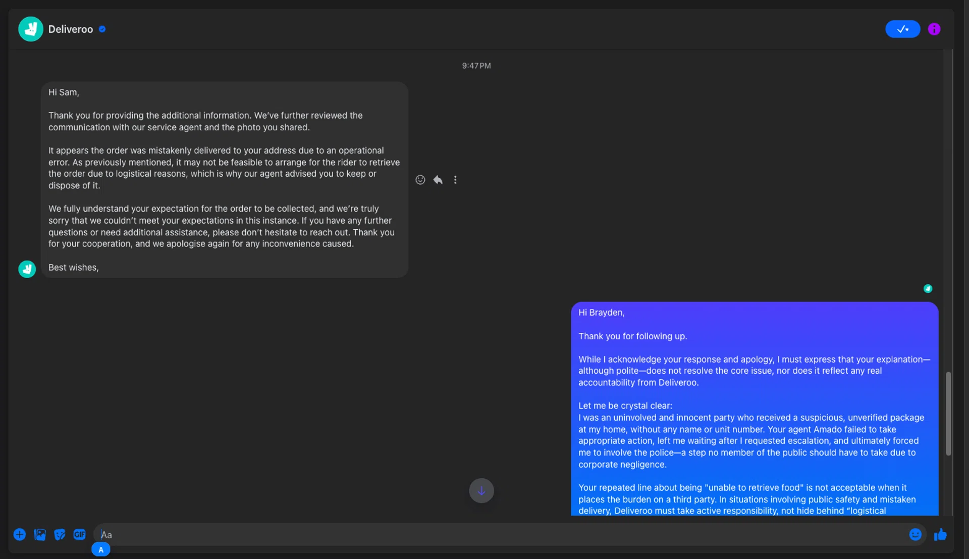 These explanations did not satisfy Lee. He argued that Deliveroo's response failed to address the "core issue" or demonstrate "any real accountability."