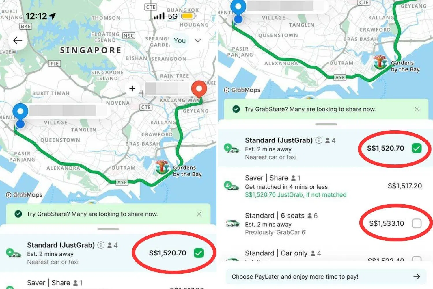 A Grab customer was left puzzled when he opened the app on Aug 20 to book a ride home - only to be confronted with fares of up to $1,533.10.