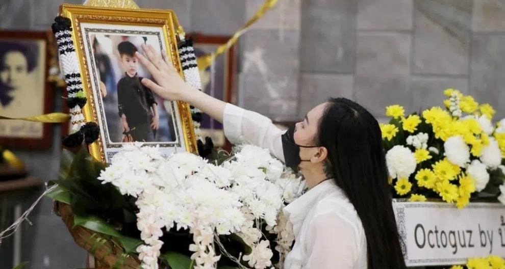 The boy's funeral was held on Wednesday. In front of his photo was a birthday cake.