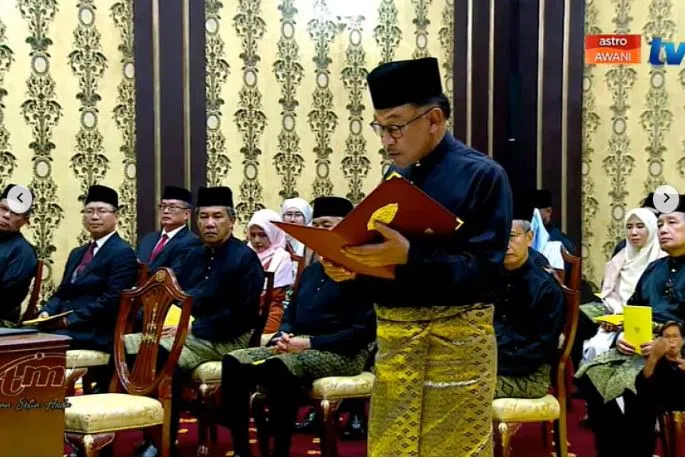 KUALA LUMPUR - Pakatan Harapan (PH) chief Anwar Ibrahim was sworn in as Malaysia's new prime minister on Thursday evening, as a slew of parties including Umno agreed to the proposal by Malaysia's King to form a unity government.