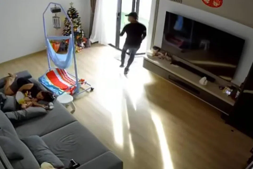 The news outlet, quoting local authorities, said the woman and baby seen in the footage are the domestic helper and the owner's child.