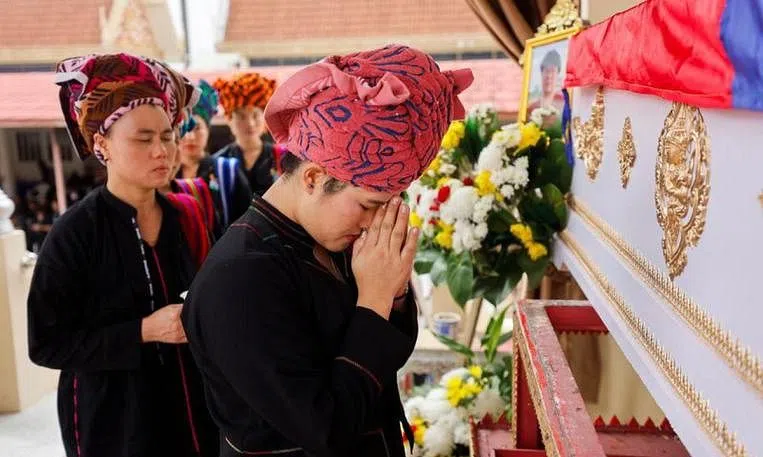 Khin Win flew in from Myanmar for the Burmese-style cremation in Nonthaburi province north of Bangkok, where her daughter's remains were brought in a procession, led by a saffron-robed monk, into the temple in a white coffin with gold trim.