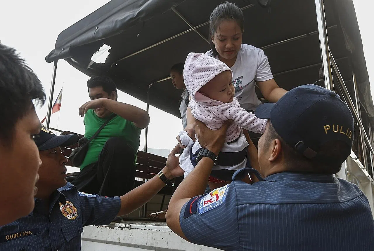 A Philippine police officer carrying a baby onto a police truck that is providing free rides to commuters following a transport strike by a group of public transport operators in Malabon City, north of Manila, yesterday. The group, collectively called Stop and Go, which operates jeepneys, is protesting a government plan to phase-out jeepneys that are 15 years and older as part of the modernisation of the public transport system.