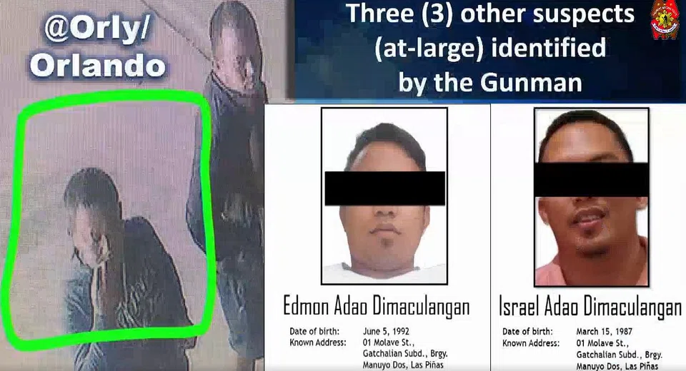 The authorities identified at least three other suspects who remain at large: Brothers Edmon and Israel Dimaculangan, and someone known as "Orly".