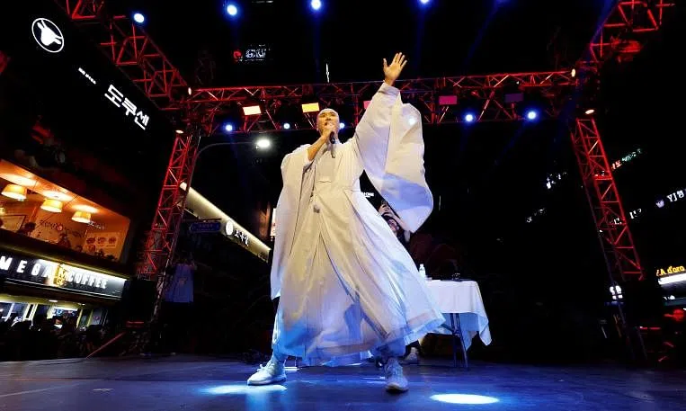 SEOUL - With a shaved head and flowing monk robes, a South Korean DJ chants traditional Buddhist scripture mixed with Gen-Z life advice over a thumping EDM beat, as the crowd goes wild.