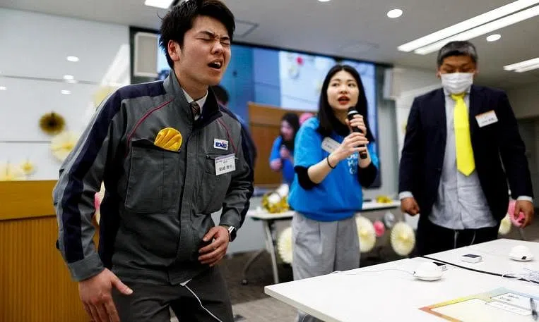 TOKYO - Men working at a telecoms firm in Tokyo experienced simulated menstrual pain to help them become more sympathetic towards their female colleagues ahead of International Women's Day on March 8.