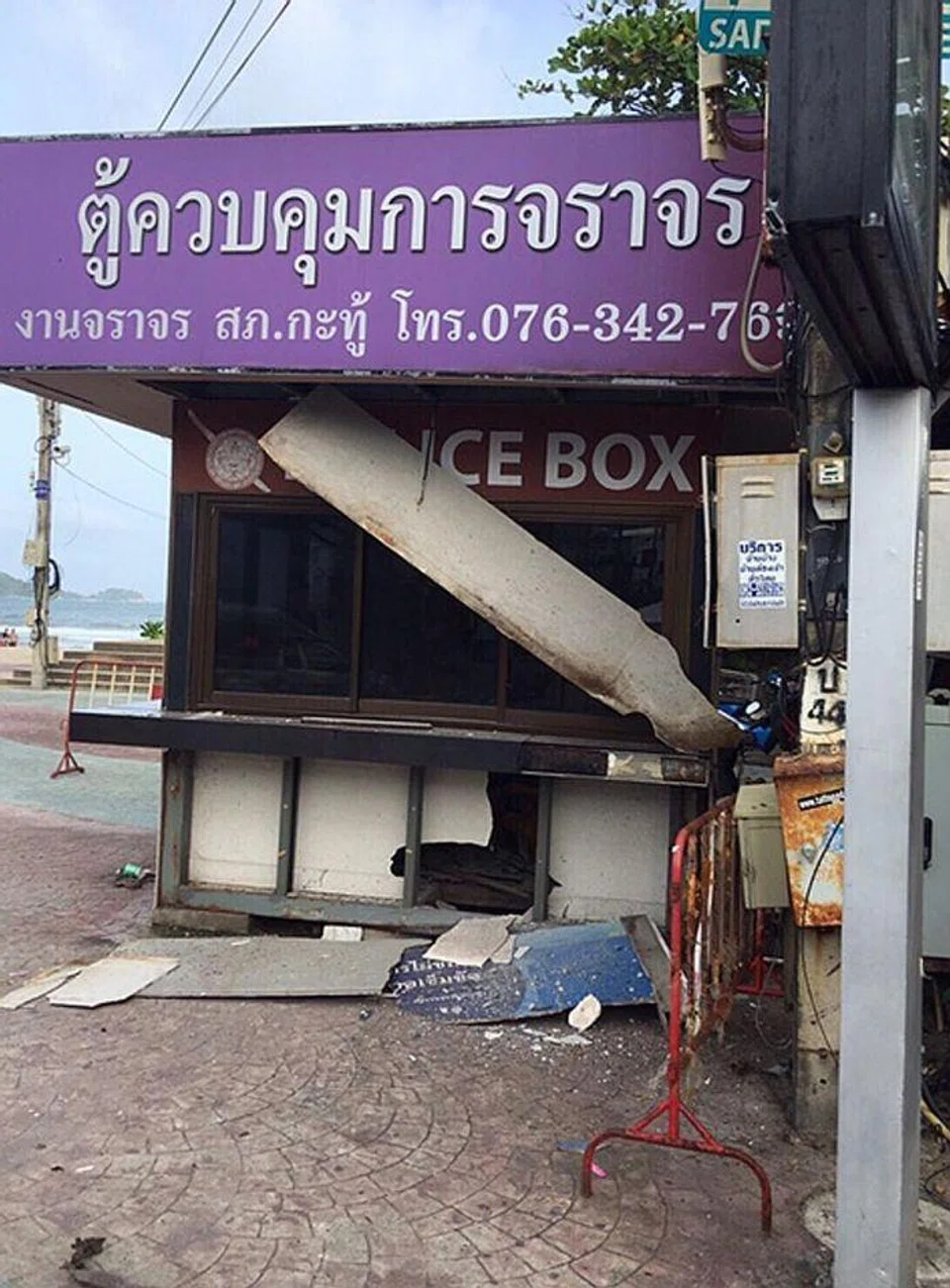 After she was rudely awakened by an explosion, Ms Amm Nathradee Kanjanayotee looked out the window of her Phuket home to find the next-door police booth damaged.