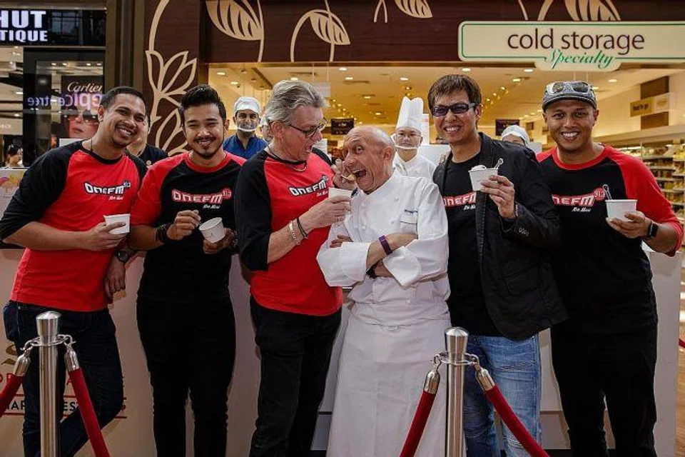 The ONE FM #1 Breakfast Show crew stopped by Marina Bay Sands yesterday to scoop and sell gelato for charity at the Scoops of Hope gelato pop-up booth.