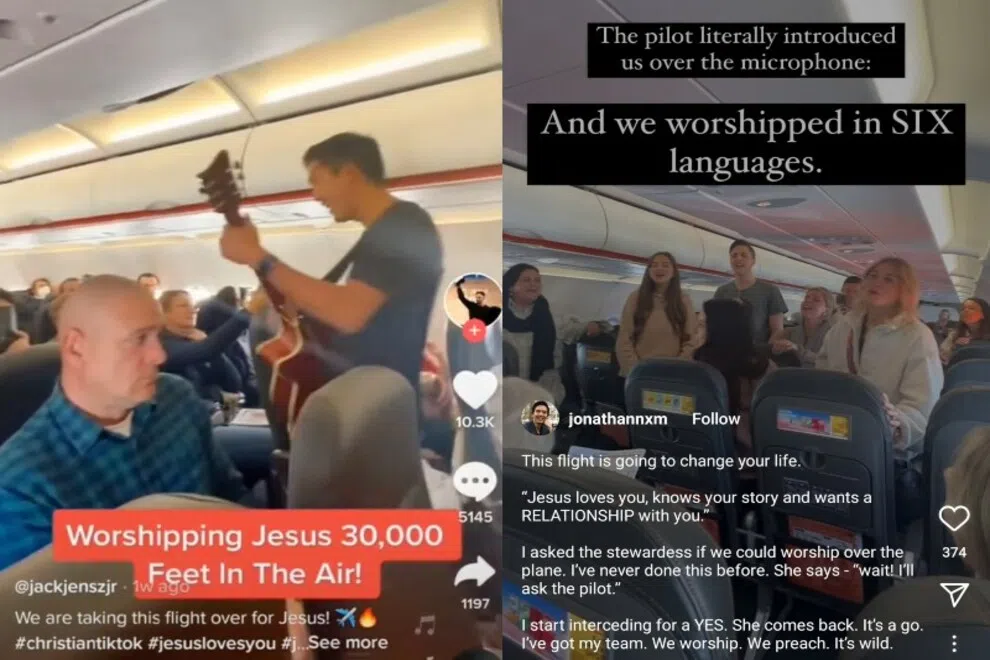 Singaporean man strums guitar and leads songs of worship onboard flight, not all are amused