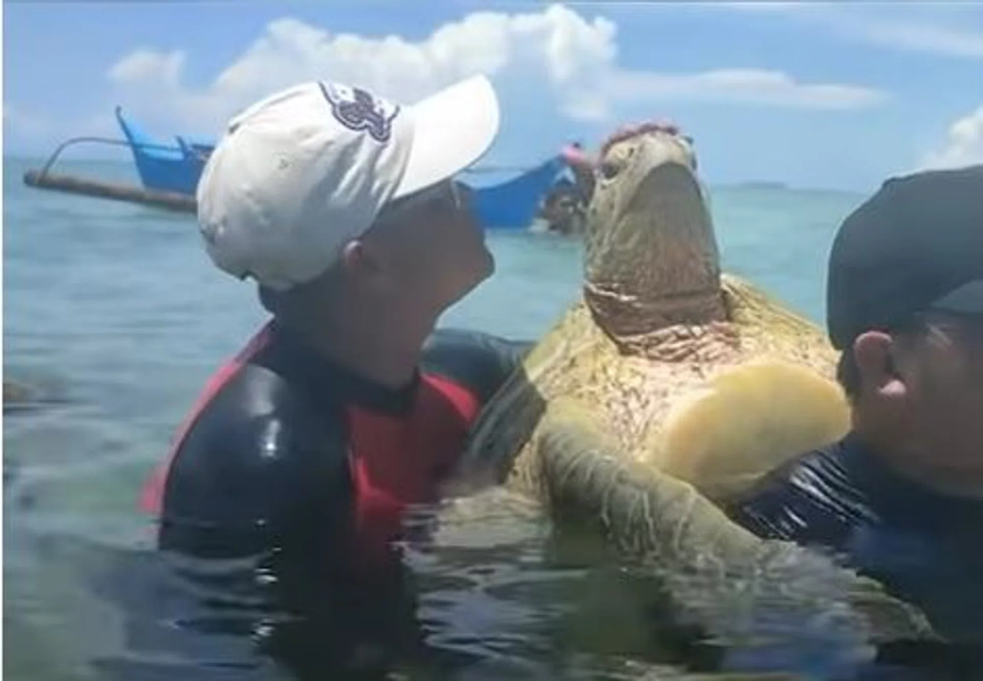 Tourist sparks outrage after making sea turtle piggyback on him in Philippines