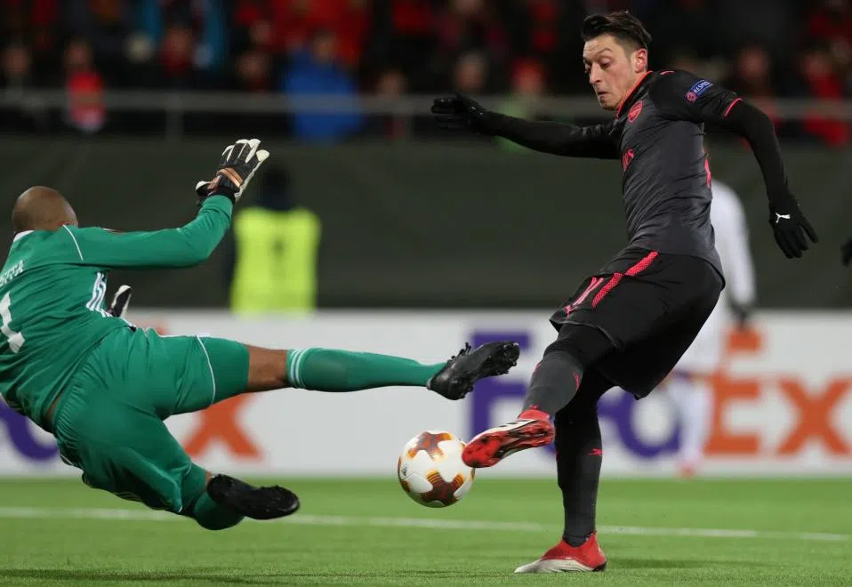 Mesut Oezil scored as Arsenal eased to a 3-0 victory at Swedish minnows Ostersunds in the first leg of their Europa League, last-32 tie on Friday morning (Feb 16, Singapore time).