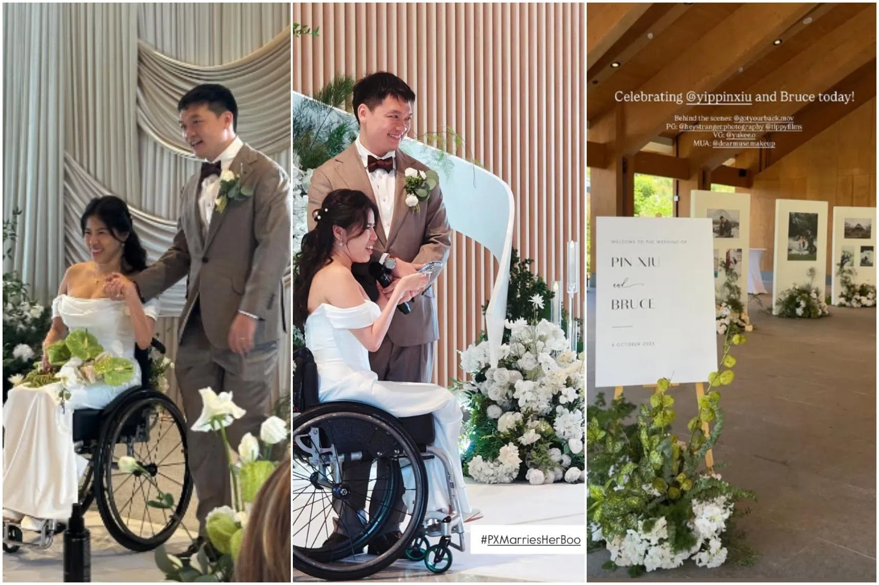 Yip's bridesmaid, former Paralympic swimmer Theresa Goh, said it was a beautiful event, adding: "There were happy tears for me seeing Pin Xiu dressed in white and moving into such an important milestone moment.