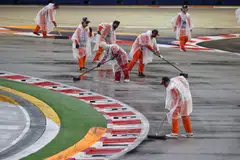 F1 boasts cutting edge technology in many areas but when it came to the most important task of clearing the track of excess water, the most handy instruments were brooms, brushes and squeegees.