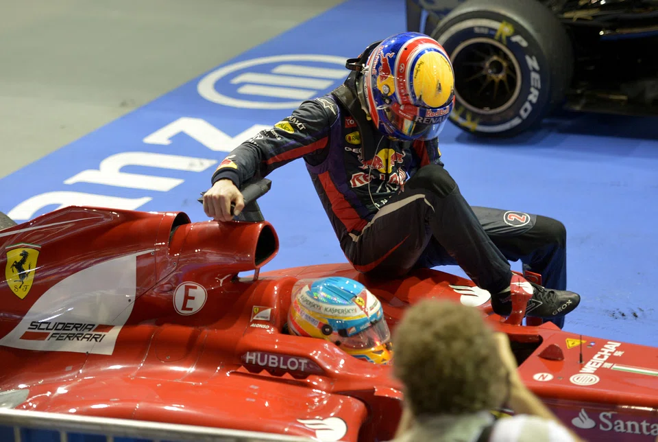Webber's taxi ride on the sidepod of Alonso's Ferrari was a gesture that many fans enjoyed but the stewards took a dimmer view of the Spaniard's generosity, meting out penalties to both drivers.