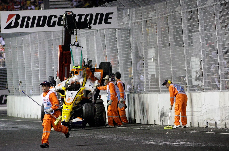 Piquet crashed into the circuit wall at Turn 17, resulting in the deployment of the safety car while the debris was cleared. Alonso had made an early pit stop in the 12th lap after starting with a light fuel load to seize an early lead. This allowed the Spaniard to outpace the other cars while they were pitted under safety car conditions. Alonso subsequently won the race despite being 15th on the starting grid.