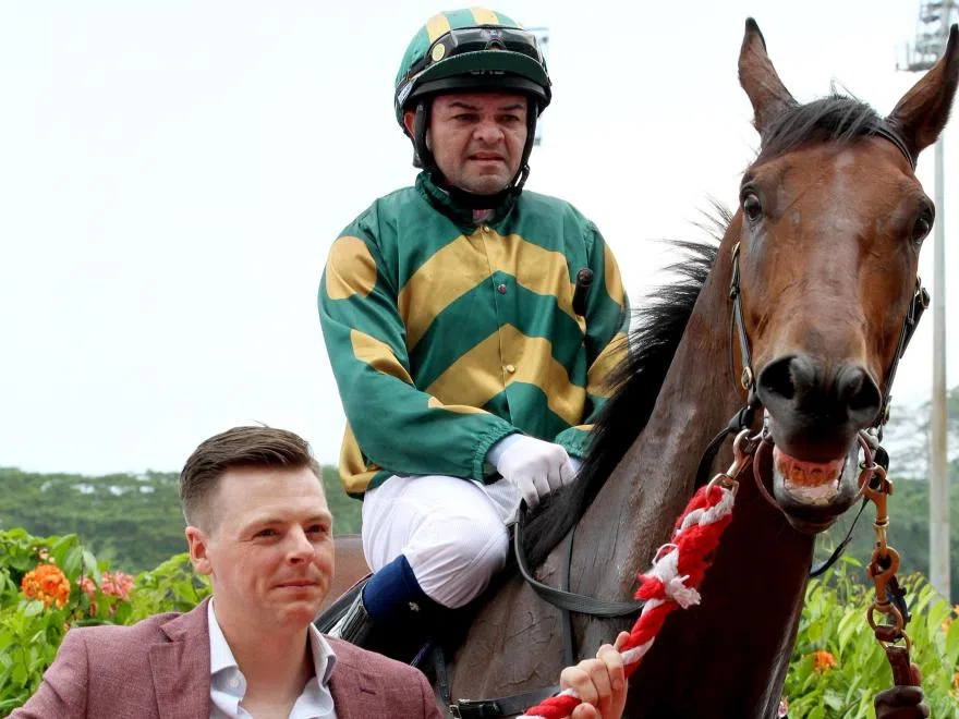 "I'll give him one more run. As the 1,400m is his minimum distance now, I'll step him up in distance. We'll look at a 1,600m Class 5 race for him on Singapore Gold Cup day (Oct 5)."