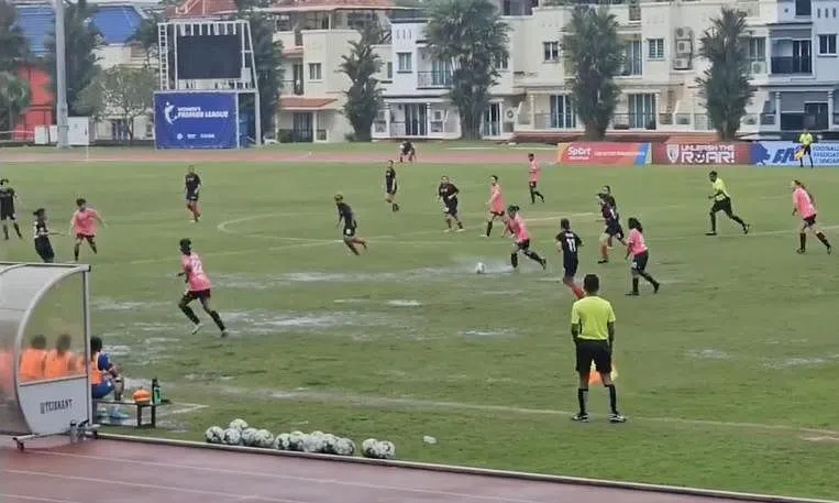 Still Aerion president Simon Tan, whose side defeated Tanjong Pagar United 1-0 on March 10, added: "I personally feel that with a waterlogged pitch like that, the game shouldn't even continue because it affects the playing quality. It wears the players down very easily."
