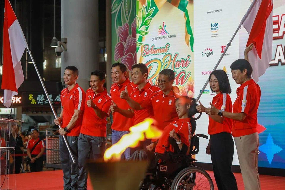 The official flag-presentation ceremony on Saturday morning also felt like a passing of the torch as hundreds of athletes mingled at Our Tampines Hub's Festive Plaza. Diver Avvir Tham, 18, approached sprinter Shanti Pereira, 26, for a wefie and reminded her how he had asked for her autograph in 2015, when she won the 200m gold.